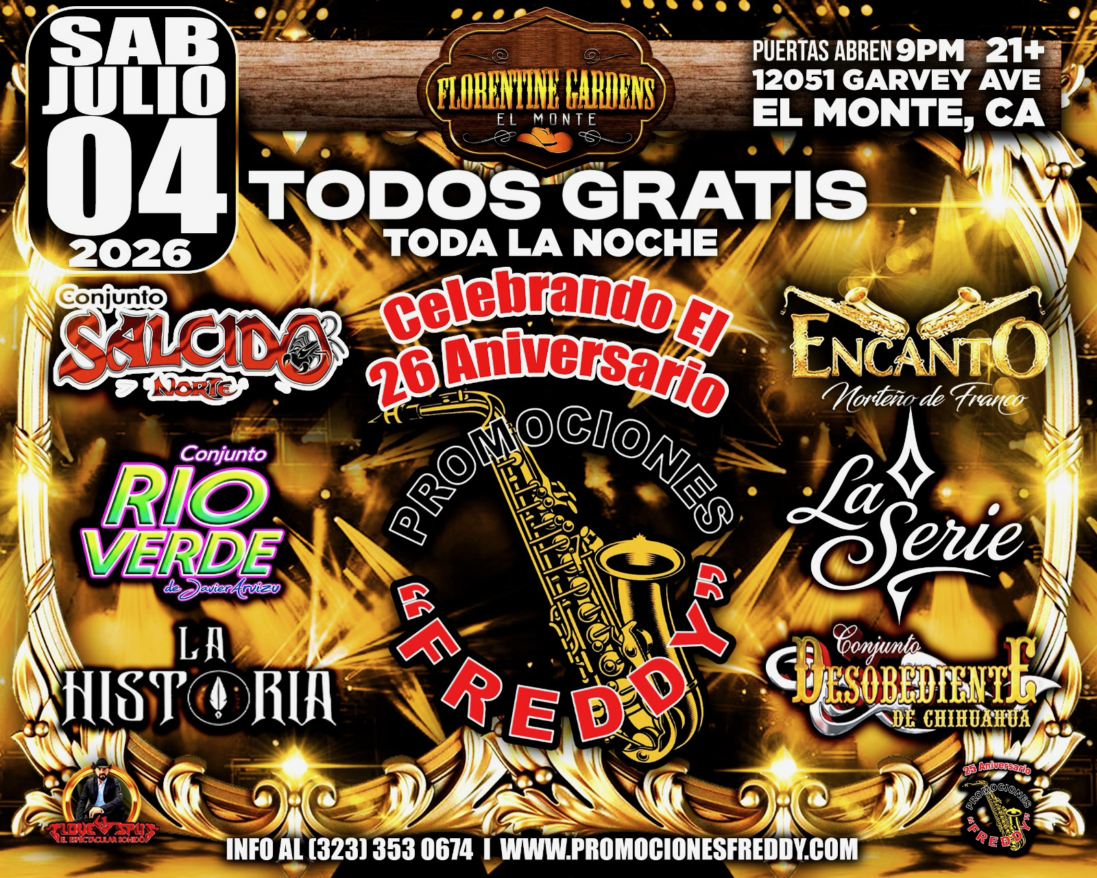 • Celebrando el 26 aniversario de Promociones Freddy, no texto, no boletos, todos entran GRATIS